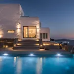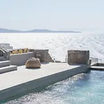 Die 6-Zimmer- Aether - Infinity Pool Villa Mykonos verfügt über eine Terrasse mit Aussicht aufs Meer sowie einen Infinity-Pool.